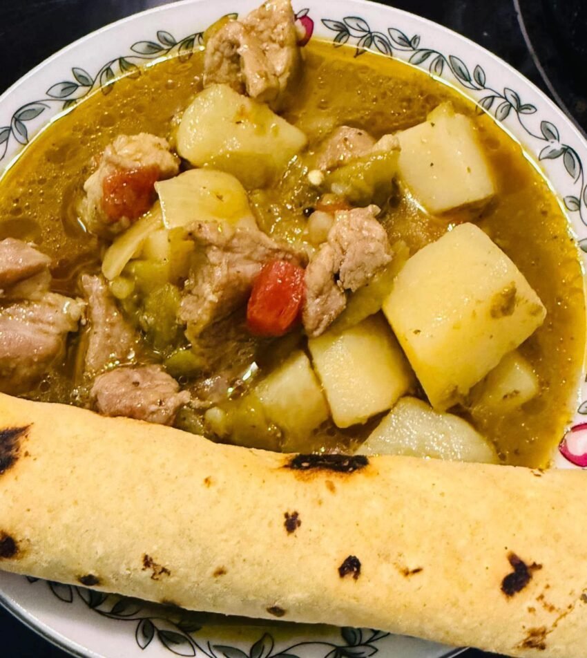 Here’s a traditional Green Chile Stew with Hot Hatch chiles—hearty, smoky, and full of New Mexico flavor 🌶️🥔