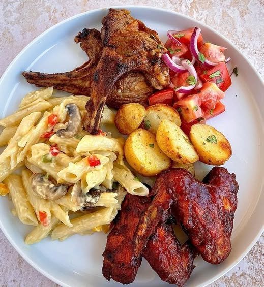 Here’s a delicious Grilled Lamb Chops & BBQ Wings Plate recipe 🍖🔥