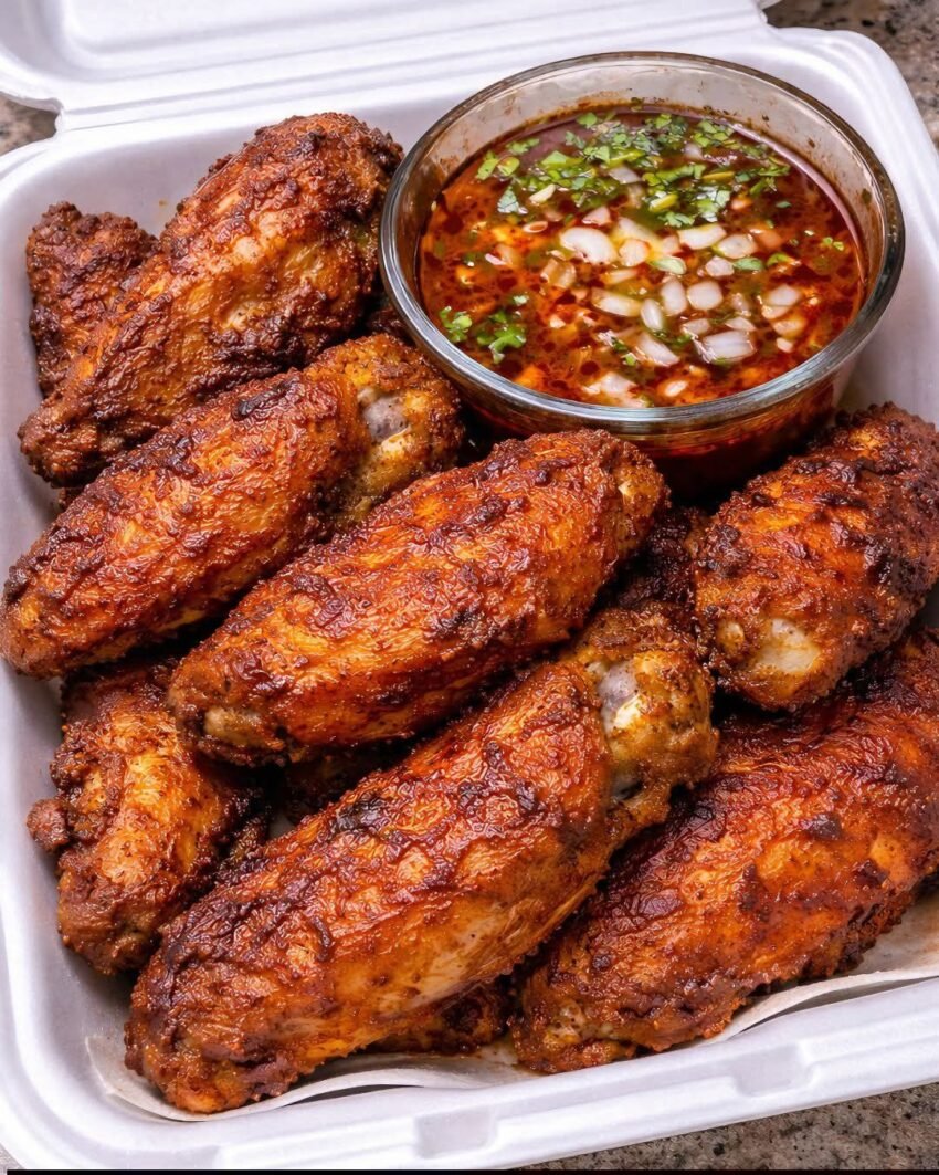 Dry the wings well (important). Toss with all dry seasonings + cornstarch.