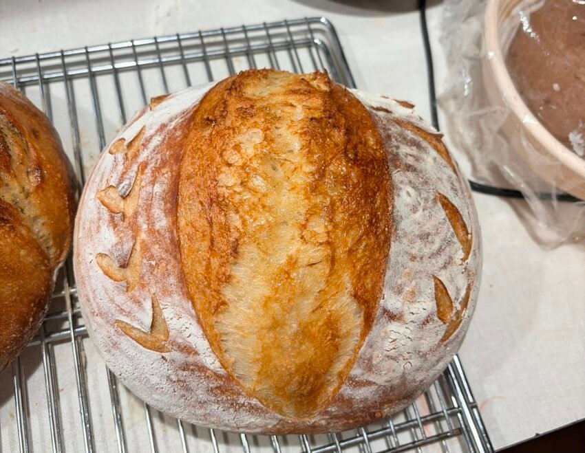 Here’s a classic homemade sourdough bread recipe 🍞